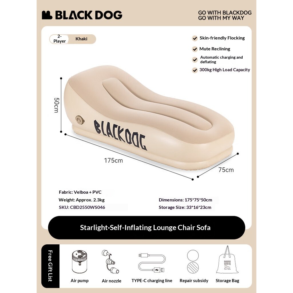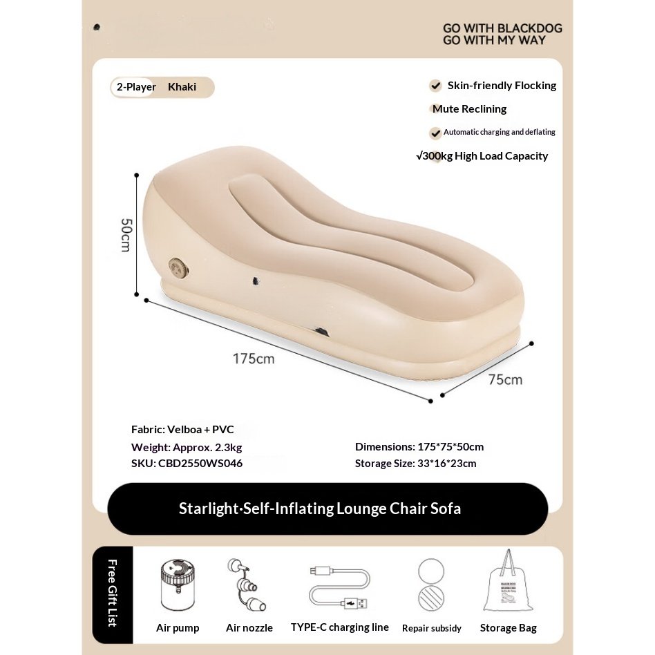 Auto Inflatable Khaki Sofa & Recliner for Camping